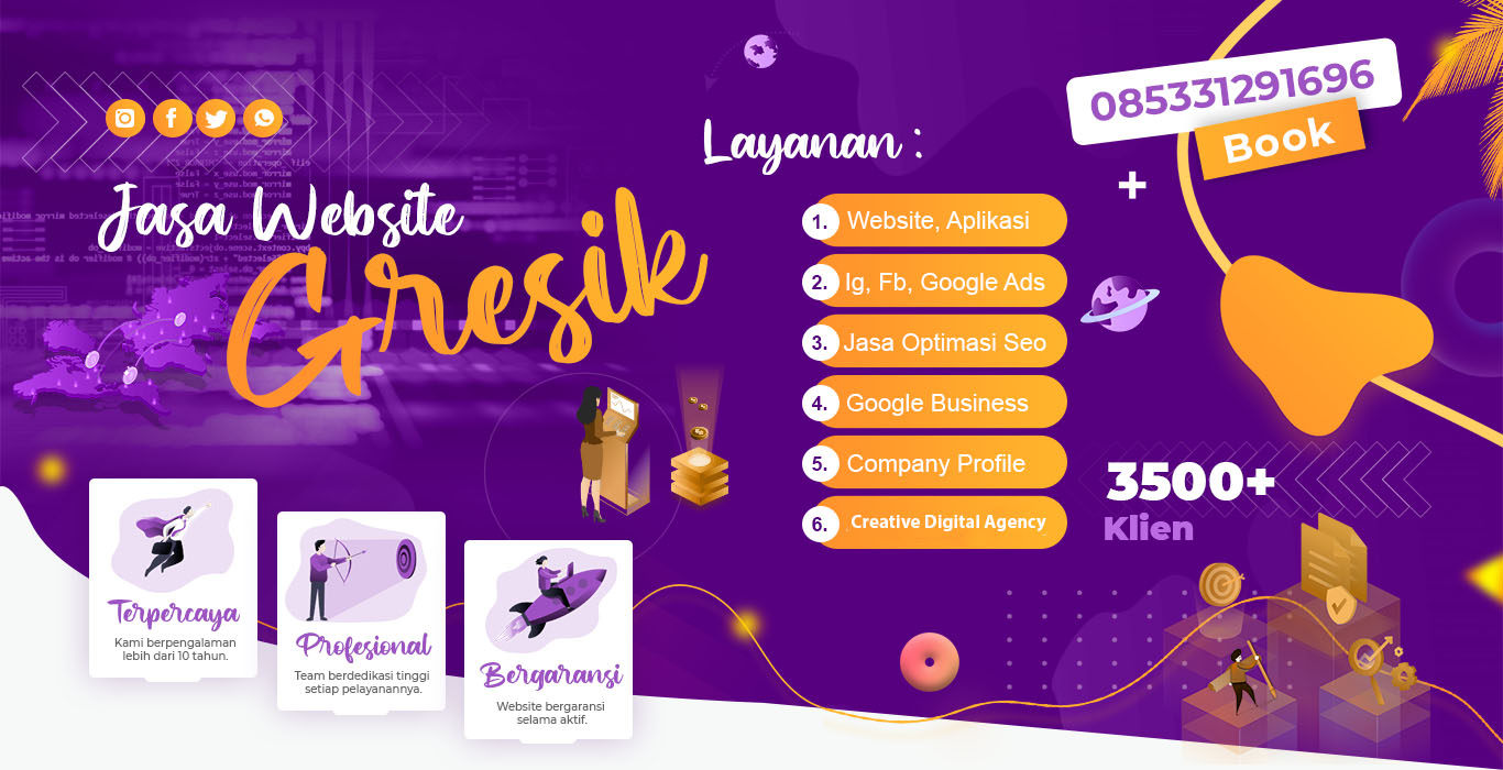 Jasa Website Gresik merupakan perusahaan jasa website profesional yang sudah banyak dipercaya oleh berbagai macam jenis usaha, untuk membantu memasarkan produk maupun jasa, untuk membantu marketing digital agency. Jaminan kedisiplinan, kualitas, jujur, adalah target utama kami. Jika Anda membutuhkan Jasa Pembuatan Website, Jasa SEO, Iklan Google Adwords, dan layanan Digital Agency lainnya Kami Adalah solusi paling tepat.